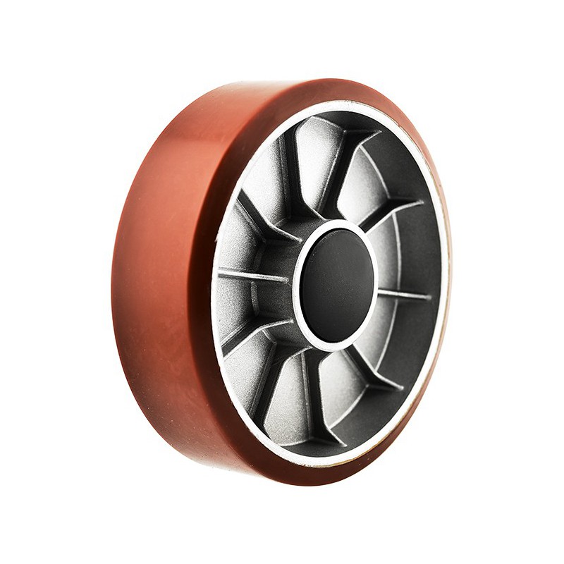 Polyurethan ist ein hochleistungsfähiges synthetisches Material mit niedrigem Geräuschpegel. Die Widerstandsfähigkeit gegen Abrieb, Schnitte und Risse erhöht die Leistung von Polyurethan-Hubwagenrädern erheblich - ein großer Vorteil.