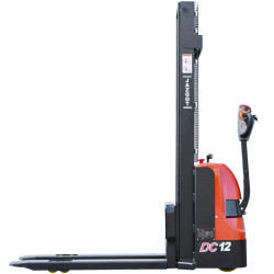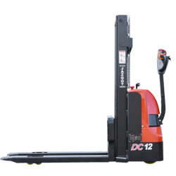Der CBD12J ist ein Vorschlag für einen Elektrohubwagen von Heli. Das Gerät wurde für den Einsatz in Lagern, Produktionshallen und überall dort, wo Paletten auf Hochregalen gelagert werden, konzipiert. Der Stapler verfügt über eine effizient gestaltete Silhouette und leistungsstarke Hydraulikkomponenten, die eine überdurchschnittliche Leistung garantieren. Der 2,2 kW starke Hubmotor bietet eine Tragfähigkeit von 1.200 kg, während der leistungsstarke Fahrmotor das Gerät auf 4,2 km/h beschleunigt. Die Sicherheit beim Bremsen wird durch eine elektromagnetische Bremse gewährleistet, die sofort auf Bewegungen der Deichsel und auch auf die Betätigung einer Nottaste reagiert, um Quetschungen zu verhindern. Der Aufbau des Staplers ist mit zwei Batterien ausgestattet, die zusammen eine Kapazität von 100 Ah haben. Eine äußerst praktische Lösung ist das eingebaute Ladegerät, das zusätzlich mit einem federbelasteten Kabel mit einem klassischen europäischen Stecker ausgestattet ist.