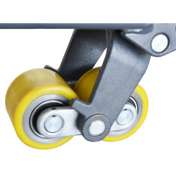 Die Hydraulik- und Antriebseinheit basiert auf einem größeren Steuerrad und zwei kleineren Seitenrädern, die für die Stabilisierung der Maschine zuständig sind. Das Antriebsrad ist mit einem Elektromotor und einer elektromagnetischen Bremse ausgestattet, so dass der Gabelstapler schnell an Geschwindigkeit gewinnt und bei Bedarf fast sofort zum Stillstand kommt.