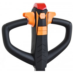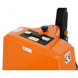 Es handelt sich um eine vollelektrische Einheit, d. h. das Fahren wird durch die Bewegungsmanipulatoren und das Heben und Senken durch Auf- und Ab-Tasten gesteuert. Das gesamte elektrische System wird von einer Lithium-Ionen-Batterie mit der klassischen Kapazität von 12 Ah gespeist. Um die Handhabung zu vereinfachen, wurde die Batterie in der Mitte des Gehäuses untergebracht, so dass sie leicht zugänglich ist. Das Lenkrad in seiner Multi-Version liegt gut in der Hand und bietet gleichzeitig Zugang zu den Fahrmanövern, den Hebetasten und der Hupe.
