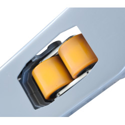 Der Wagen bietet uns die Möglichkeit des Dauerbetriebs, wenn wir eine zweite Batterie kaufen. Der Akku ist kompakt und wiegt sehr wenig. Seine Größe und die leicht zugängliche Platzierung im Hubwagen tragen zu einem sehr schnellen und problemlosen Austausch bei. Der Vorteil dieser Konfiguration ist, dass die Maschine während der Landung nicht immobilisiert werden muss.