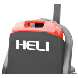 Der Heli-Gabelhubwagen ist auch dank seiner vollständigen Elektrifizierung sehr einfach und komfortabel zu bedienen. Dies gilt sowohl für das Fahren als auch für das Heben und Senken. Die bequeme Druckknopfsteuerung an der Deichsel ermöglicht dem Bediener ein schnelleres und müheloseres Arbeiten. Außerdem gibt es einen Schalter an der Deichsel und einen Bauchschalter, der den Fahrer vor versehentlichem Quetschen schützt. Eine elektromagnetische Bremse und eine Motorbremsfunktion tragen ebenfalls zur Sicherheit bei.