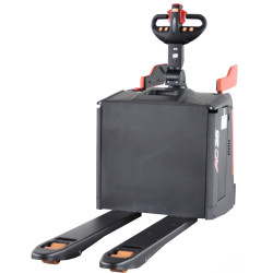 Ein großer Vorteil dieses Elektrohubwagens ist seine Lithium-Ionen-Batterie. Sie können ihn an die Steckdose anschließen, wenn Sie nicht arbeiten, und es dauert nur 2 Stunden, bis er vollständig aufgeladen ist. Der Ladezustand wird durch die Batteriestatusanzeige an der Deichsel angezeigt. Da die Batterie handlich und leicht ist, lässt sie sich leicht einbauen und austauschen.