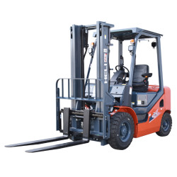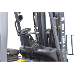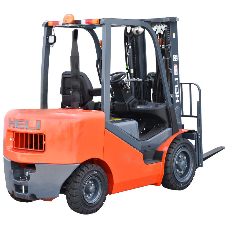 Ein weiterer angebotener HELI-Gabelstapler ist mit einem KUBOTA V2403-Motor ausgestattet, der seine Aufgaben perfekt erfüllt. Dieses Modell verfügt über einen Duplexmast und kann Lasten bis zu einer Höhe von 3.300 mm heben. Da er nicht über eine Freihubfunktion verfügt, eignet er sich am besten für hohe Standorte.