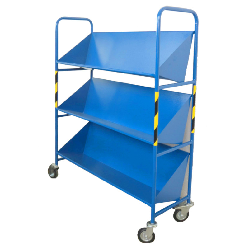 Der Aktenwagen mit drei Böden ist ein vierrädriges Modell und eignet sich ideal für den Transport von Dokumenten, Ordnern und anderen Gegenständen in Büros, Büros, Gerichten, Archiven sowie in Werkstätten und Lagerhallen.