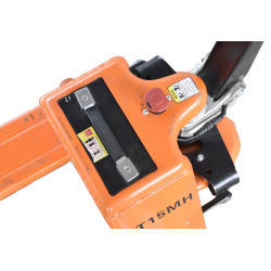 Eine moderne Lösung im Modell ET15MH ist das Zündschloss mit integriertem Not-Aus-Schalter. Außerdem bietet der Hubwagen zwei Geschwindigkeitsstufen – schnell und langsam – sowie einen Modus zum Bewegen mit aufrechter Deichsel. Ideal für enge Räume!