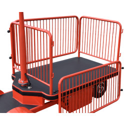 Der Wagen ist mit durchbrochenen Brettern mit Sprossen ausgestattet, die die Ladung wirksam sichern und verhindern, dass sie von der Plattform rutscht. Diese Konstruktion erleichtert auch den Zugang zu den Gütern beim Be- und Entladen und verbessert die Sicht des Bedieners.