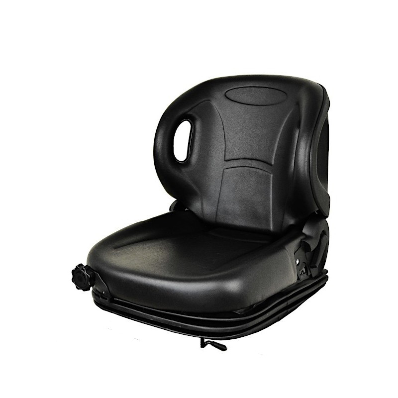 Dieser Sitz wird den Benutzern von Toyota-Gabelstaplern ins Auge fallen. Er wurde mit Blick auf diese Maschinen entwickelt. Zusätzlich zu den grundlegenden Funktionen wie Dokumentenbox, Rückenlehne und Sitzneigungsverstellung verfügt er über eine Polsterung. Die Empfindlichkeit lässt sich mit einem kleinen Drehknopf leicht einstellen.